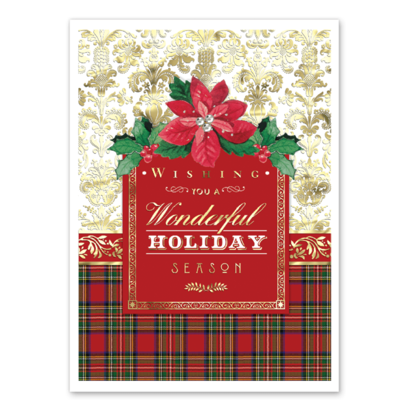 Share love and appreciation in shimmering style with our dimensional holiday greeting cards. Includes 12 cards with interior greetings and tasteful helpings of gems and foil accents.
