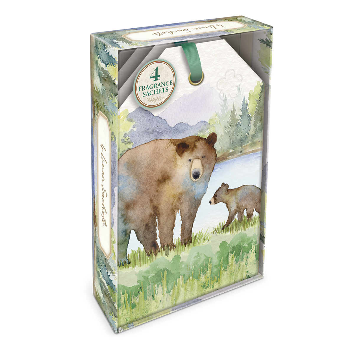 Place a pack of our pretty sachet fragrances into spaces like armoires, dressers or suitcases that need a little freshening. Each sachet hangs with ribbon bow threaded through metal grommet. Perfectly boxed for Gifting as a set of four.