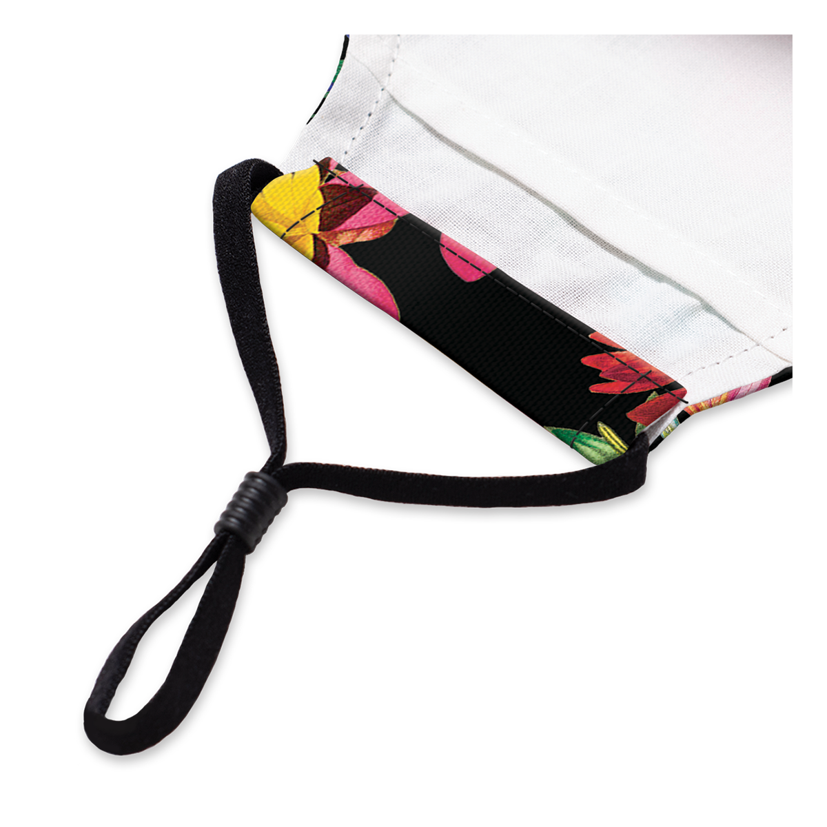 - Adjustable elastic ear loops, including rubber bead to adjust the elastic length, and stopper to keep the bead from slipping off