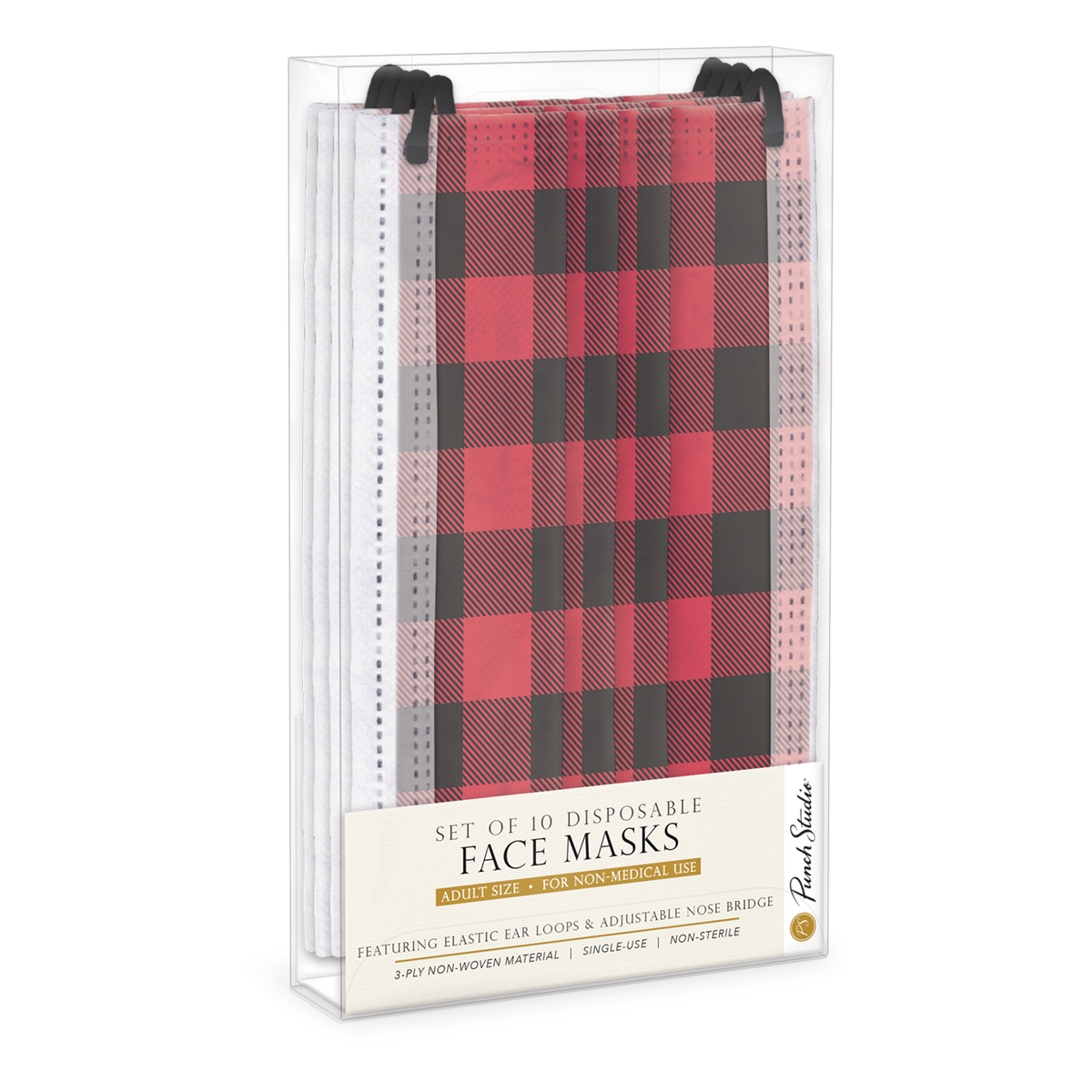 Celebrate the season with these festive face masks. Ten masks in a pack, with three-ply non-woven fabric, adjustable pinch nose bridge and elastic ear loops.