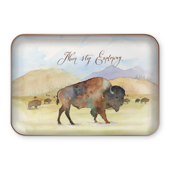 Cabin, camper or condo– these nature themed metal trays are the perfect complement to any rustic décor. Glossy printed surface is backed with gold metallic finish base.