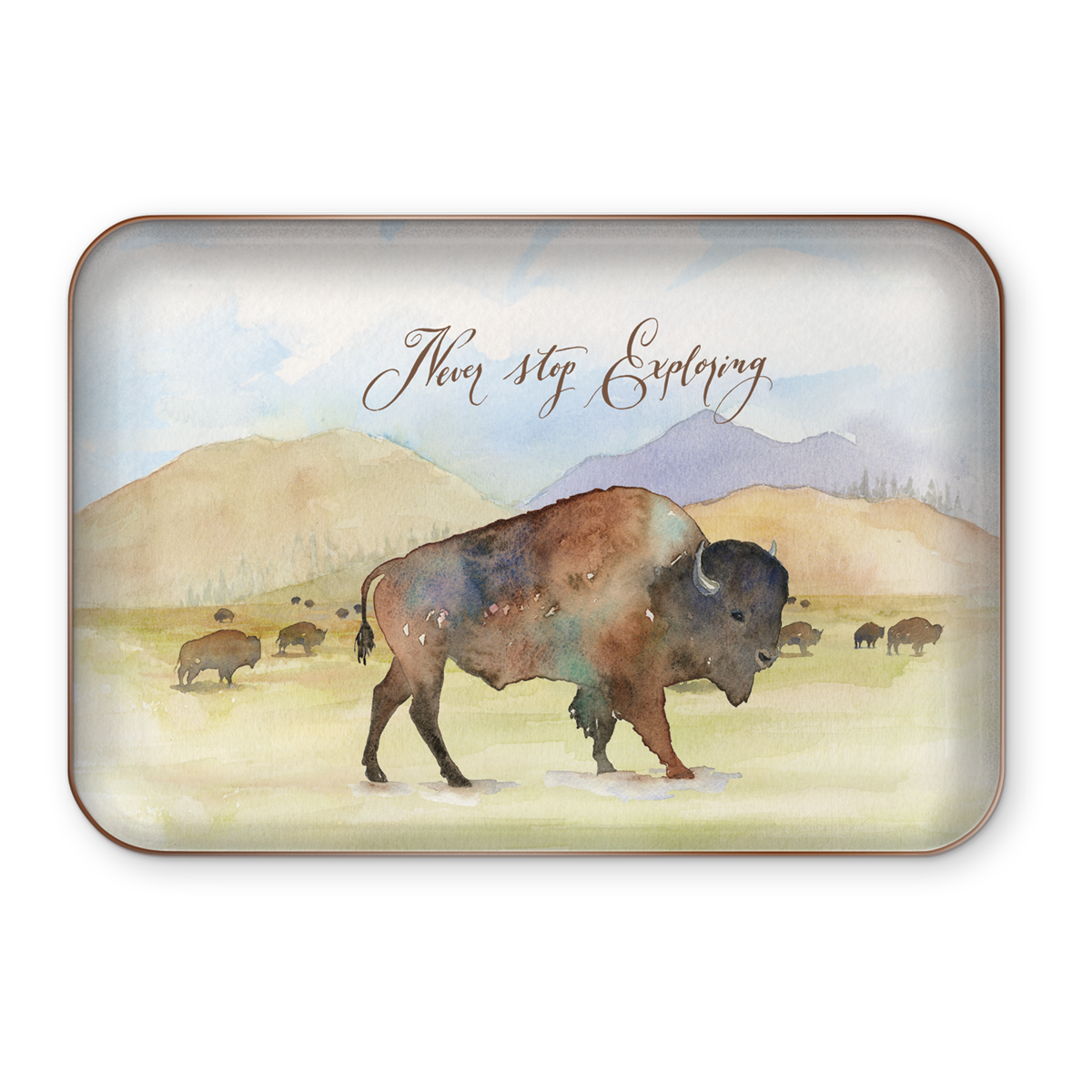 Cabin, camper or condo– these nature themed metal trays are the perfect complement to any rustic décor. Glossy printed surface is backed with gold metallic finish base.