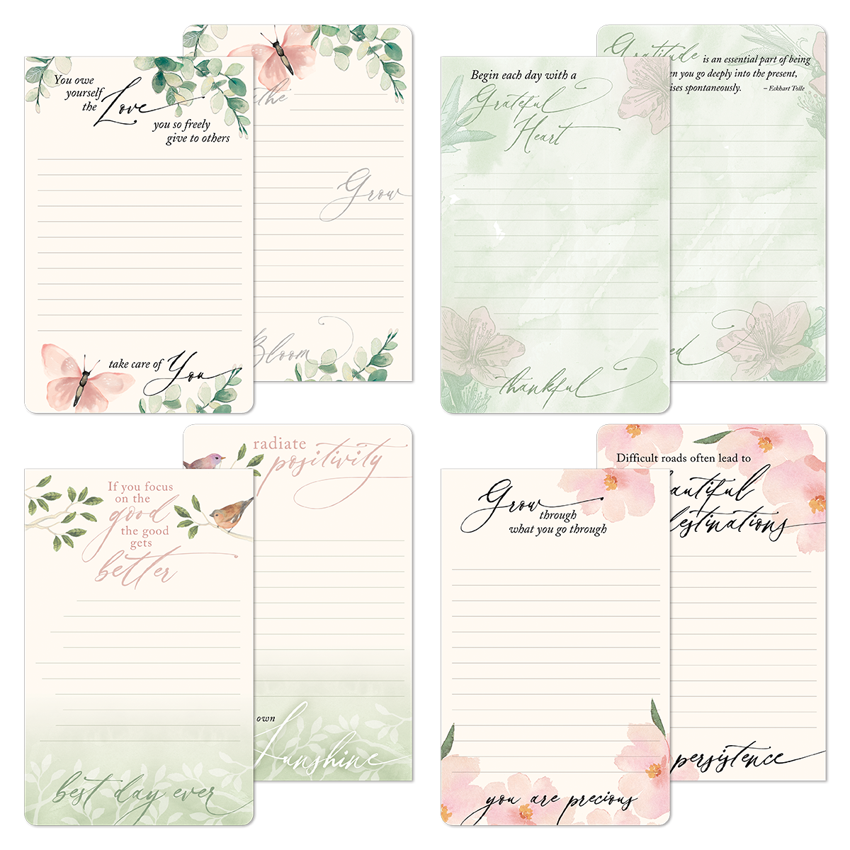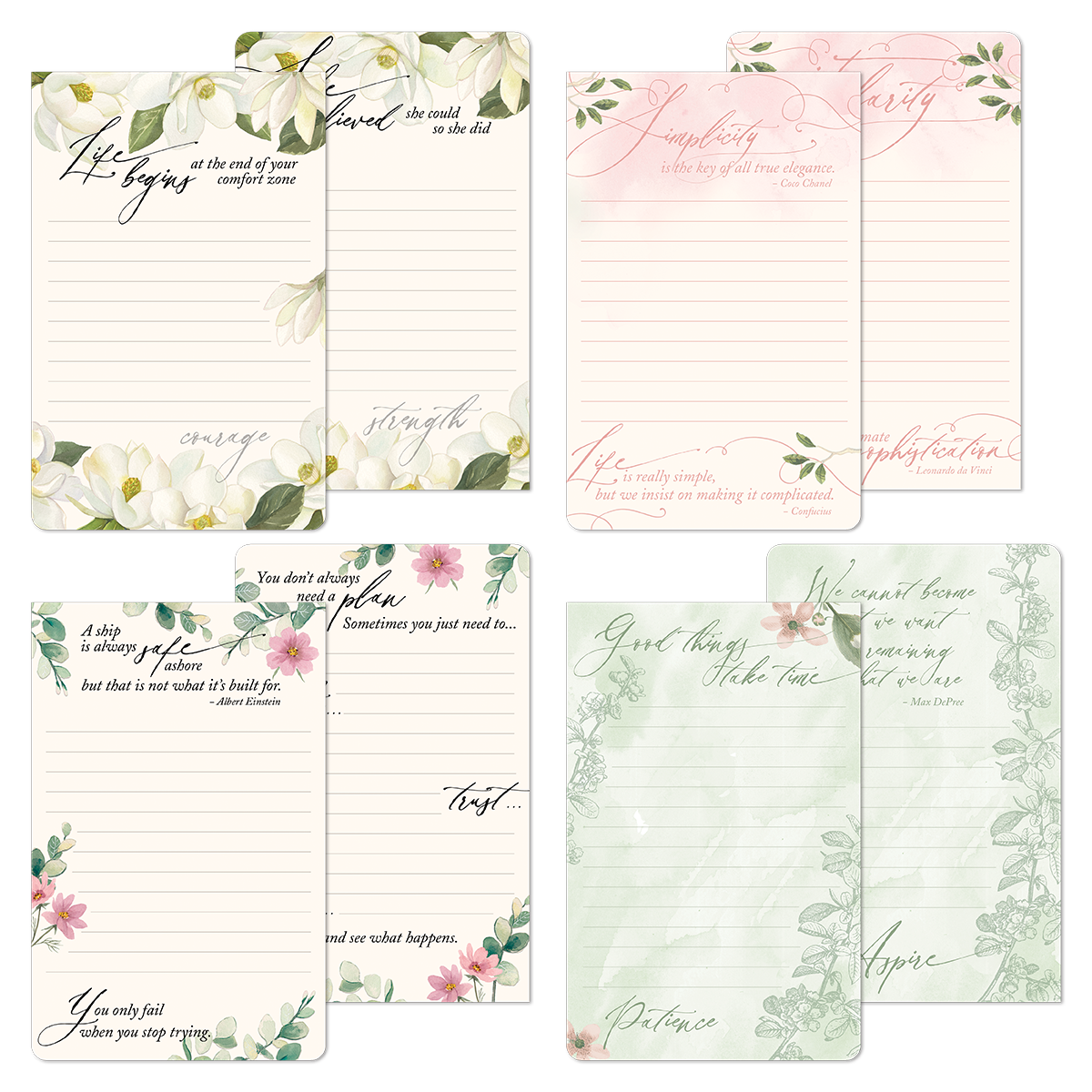 Not your average notepad, this beauty features 16 different designs alternating throughout its 80 full color lined sheets. Includes pages with inspiring ideas like, “Grow through what you go through,” and “Life begins at the end of your comfort zone.” Other pages reveal inspirational quotes from some of the greatest thinkers.