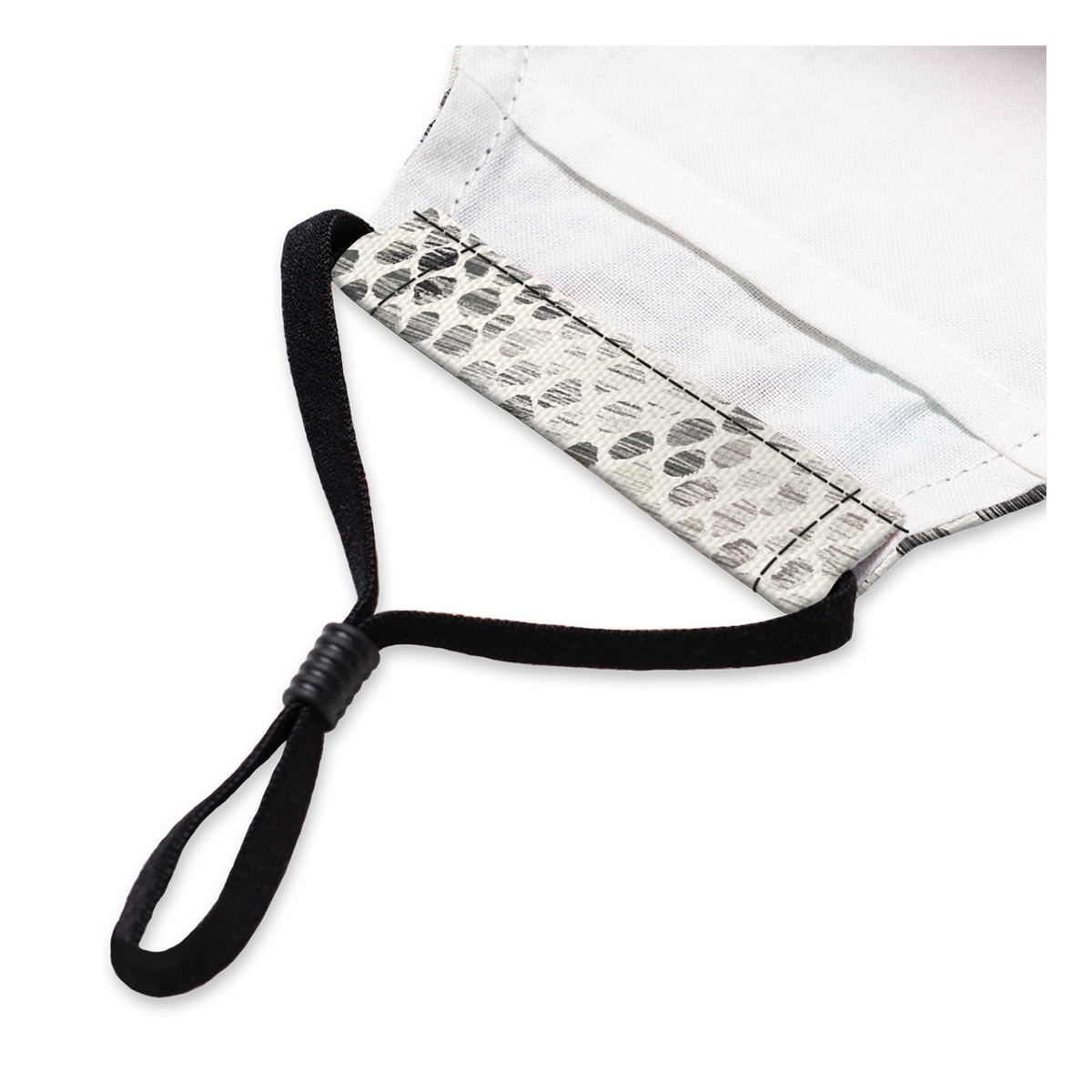 - Adjustable elastic ear loops, including rubber bead to adjust the elastic length, and stopper to keep the bead from slipping off