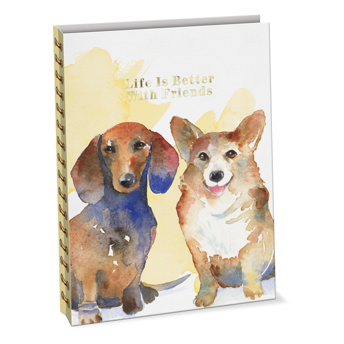 Delightful dogs in soft watercolors with gold foil accents adorn the cover. This right size journal is the perfect Gift for fans of fido. Features linen texture soft cover, 192 lined pages and semi-concealed spiral construction.