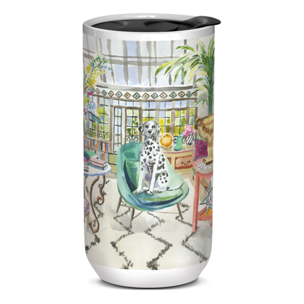 Perfect for lounging on the veranda with a vente, or iced tea on the terrace. Drinks stay cold or hot in these ceramic double-walled travel mugs with removable plastic sipping lids.