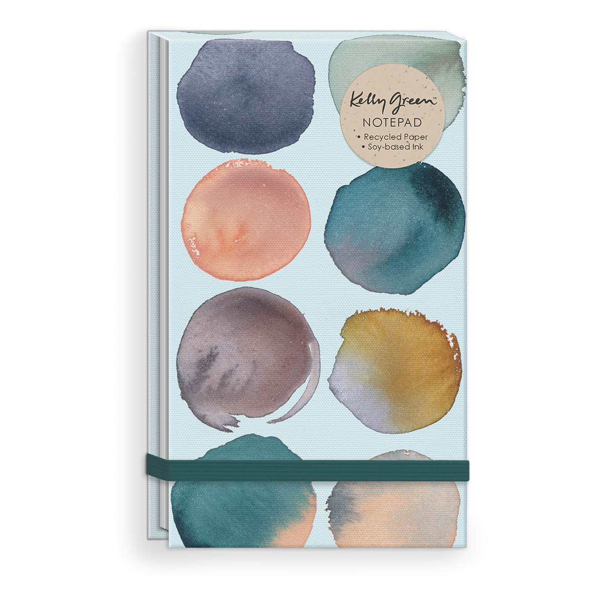 Muted, contemporary watercolor designs on linen fabric covers give our top-bound notepads an upscale, sophisticated finish. Feel good about the 80 recycled paper pages inside, printed with soy ink. Elastic bungee closure keeps pages pristine.