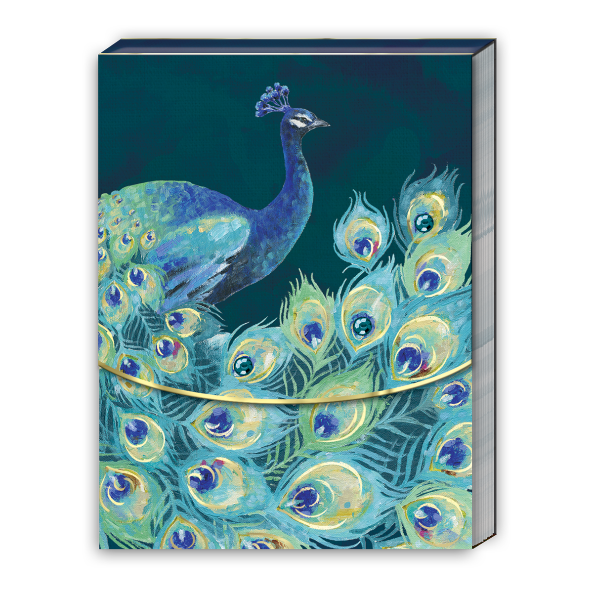 Handy, compact and fun–tiny notepads feature peacock plumes accented with metallic foil, glitter and gems. Features 75 printed color pages with border art elements from the cover. Magnetic flap closure.