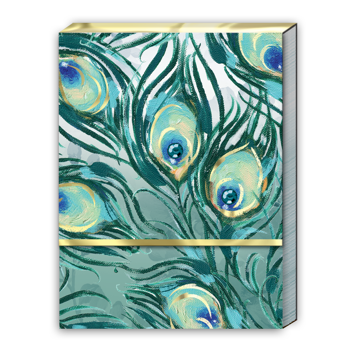 Handy, compact and fun–tiny notepads feature peacock plumes accented with metallic foil, glitter and gems. Features 75 printed color pages with border art elements from the cover. Magnetic flap closure.