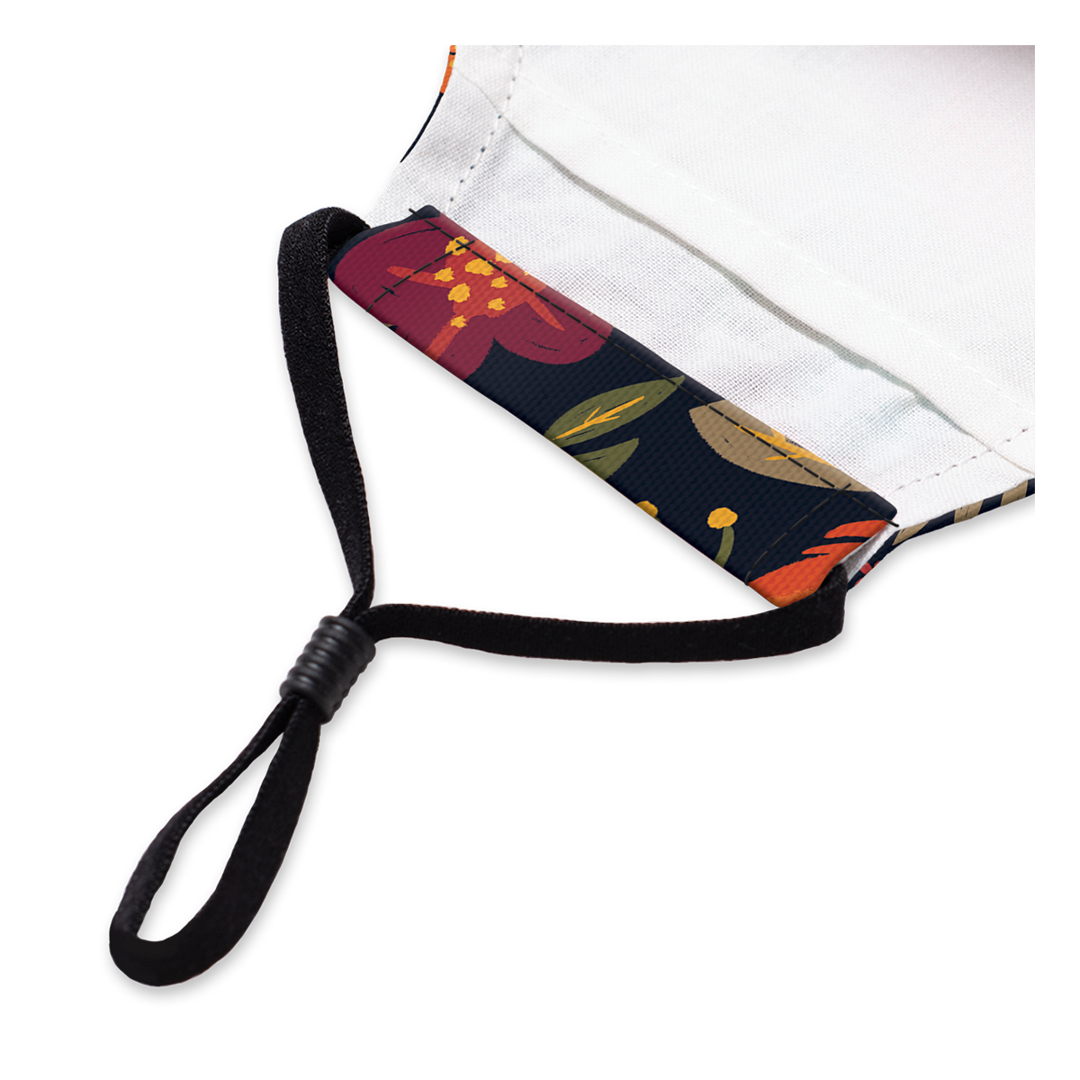 - Adjustable elastic ear loops, including rubber bead to adjust the elastic length, and stopper to keep the bead from slipping off