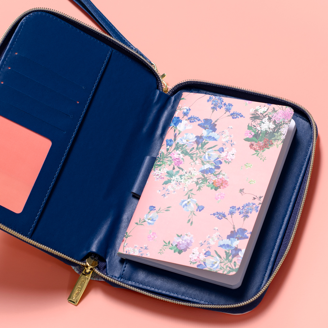 More pocketbook than journal, this clutch has space for cards and cash, your ID, pen and of course a compact, removable 80-page lined journal. Easy carry with wrist loop.