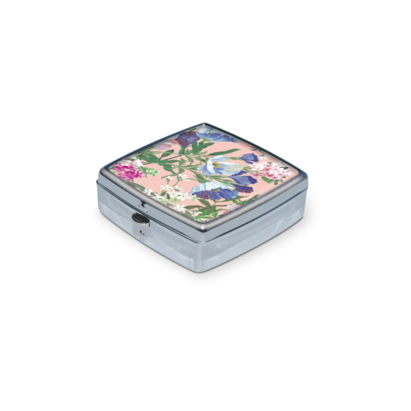 Just two inches square, our chrome-plated pill boxes keep your meds handy, but can also contain all those little things you need in a pinch—buttons, paperclips, earrings, etc. Plastic lined interior has two compartments. Includes, press-release latch closure.