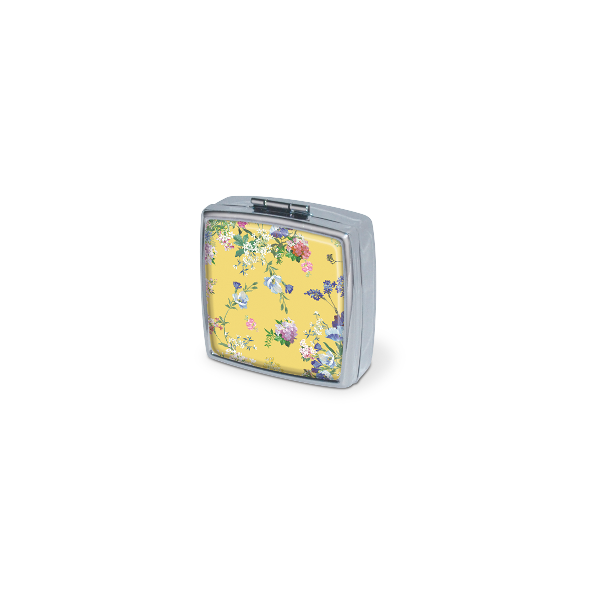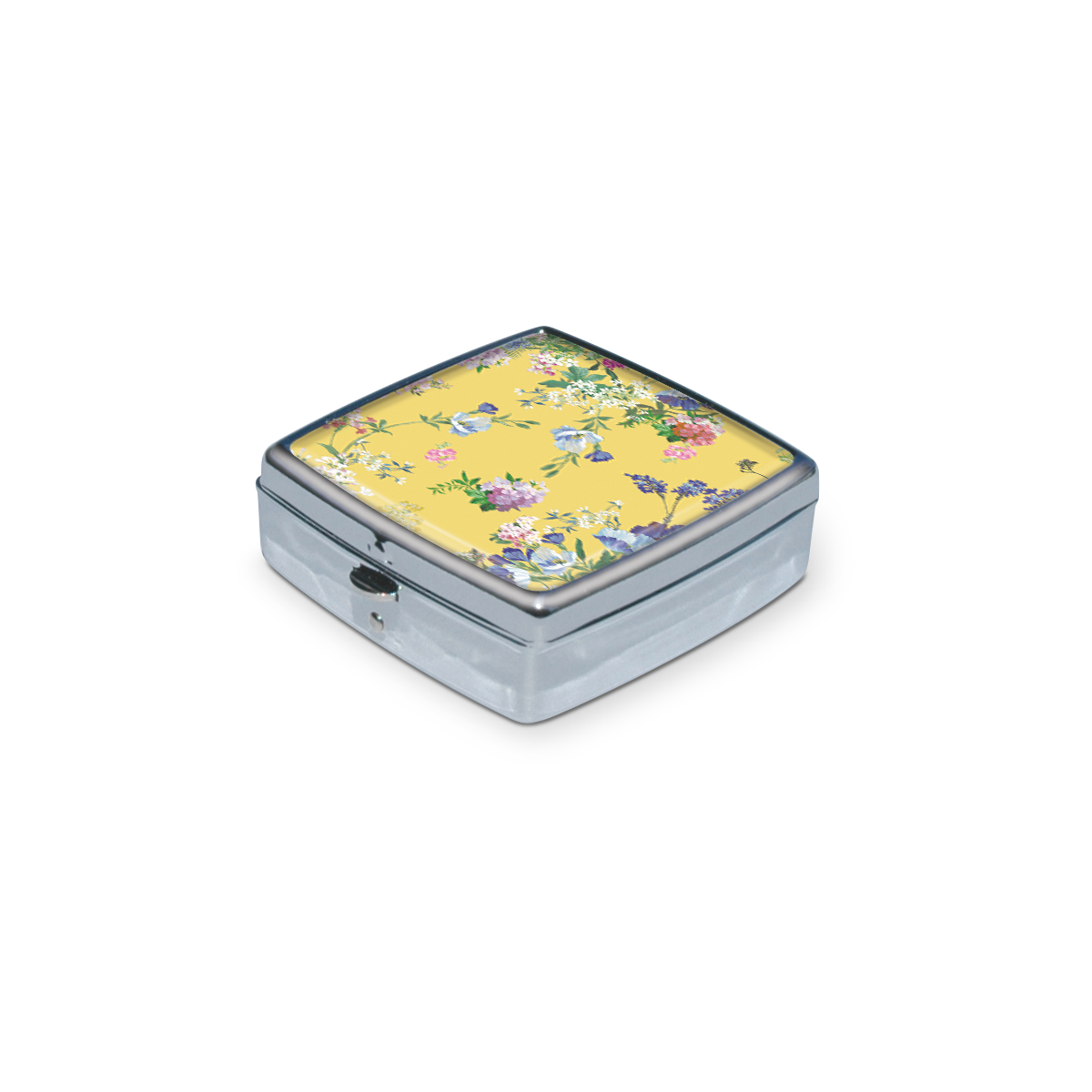 Just two inches square, our chrome-plated pill boxes keep your meds handy, but can also contain all those little things you need in a pinch—buttons, paperclips, earrings, etc. Plastic lined interior has two compartments. Includes, press-release latch closure.
