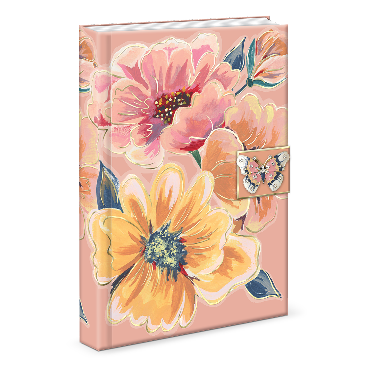 Flowers are like friends; they bring color to your world. Jot down your dreams and big plans in our floral journals bedazzled with a beautiful jeweled brooch. 208 full-color lined pages are tucked safely inside the protective hard cover.