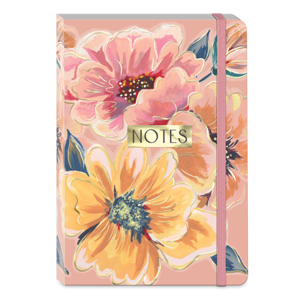Fanciful floral and gold foil journal has 200 full-color lined pages feature corner accent art. Pages stay secure with stretch elastic bungee band.