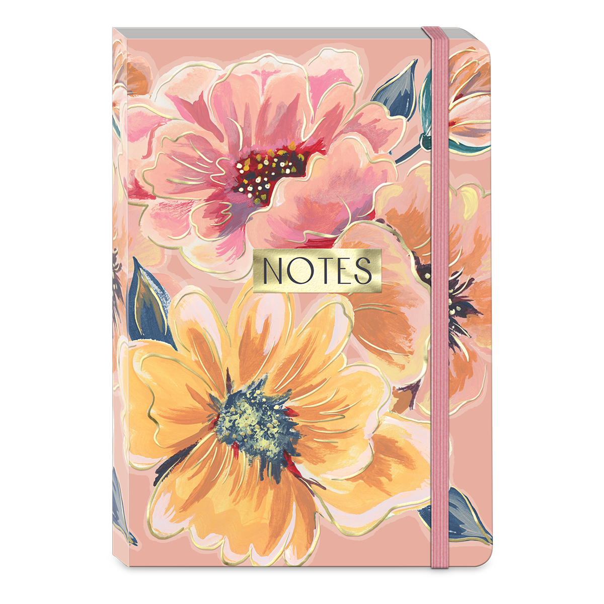 Fanciful floral and gold foil journal has 200 full-color lined pages feature corner accent art. Pages stay secure with stretch elastic bungee band.