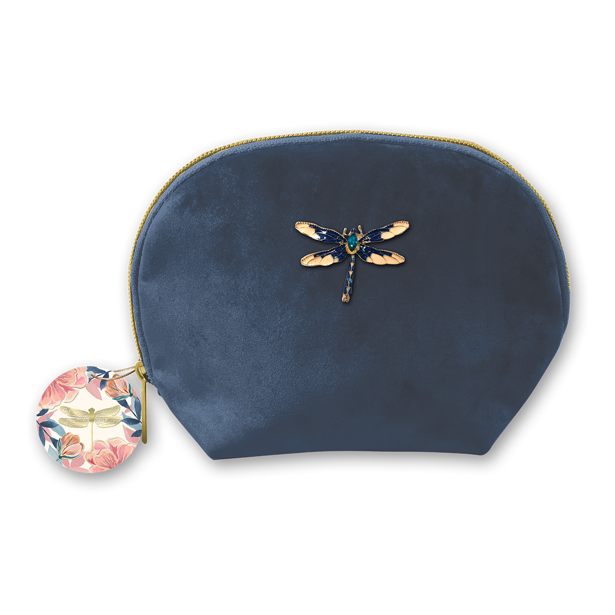 The soft crush of velvet puts these luxe zippered bags a cut above. Features gold foiled zip pull and shimmering jeweled insect brooch.