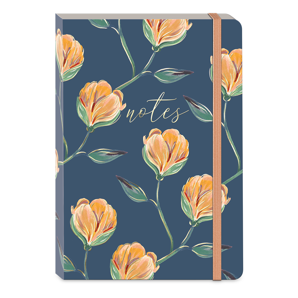 Fanciful floral and gold foil journal has 200 full-color lined pages feature corner accent art. Pages stay secure with stretch elastic bungee band.