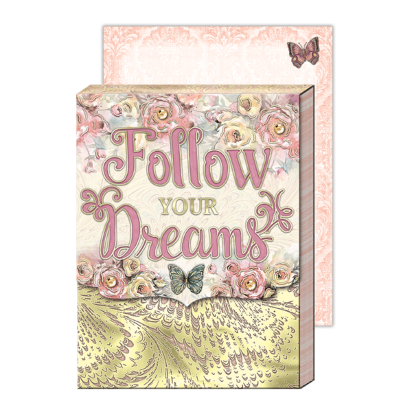 These notepads may be small, but they have plenty of room for your hopes, dreams, and plans. Inspired by the beauty and serenity of the natural world and adorned with glittery gold foil and gems, they’re perfect to keep in your purse, glove box or travel bag. Features a protective magnetic flap closure to keep everything safe inside. 75 printed color pages have border art elements from the cover.