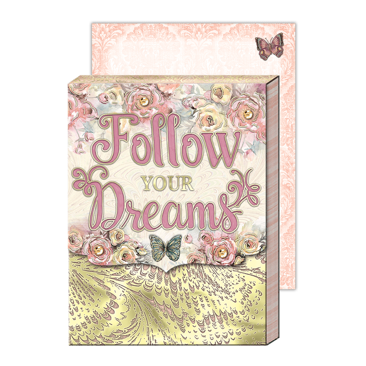 These notepads may be small, but they have plenty of room for your hopes, dreams, and plans. Inspired by the beauty and serenity of the natural world and adorned with glittery gold foil and gems, they’re perfect to keep in your purse, glove box or travel bag. Features a protective magnetic flap closure to keep everything safe inside. 75 printed color pages have border art elements from the cover.