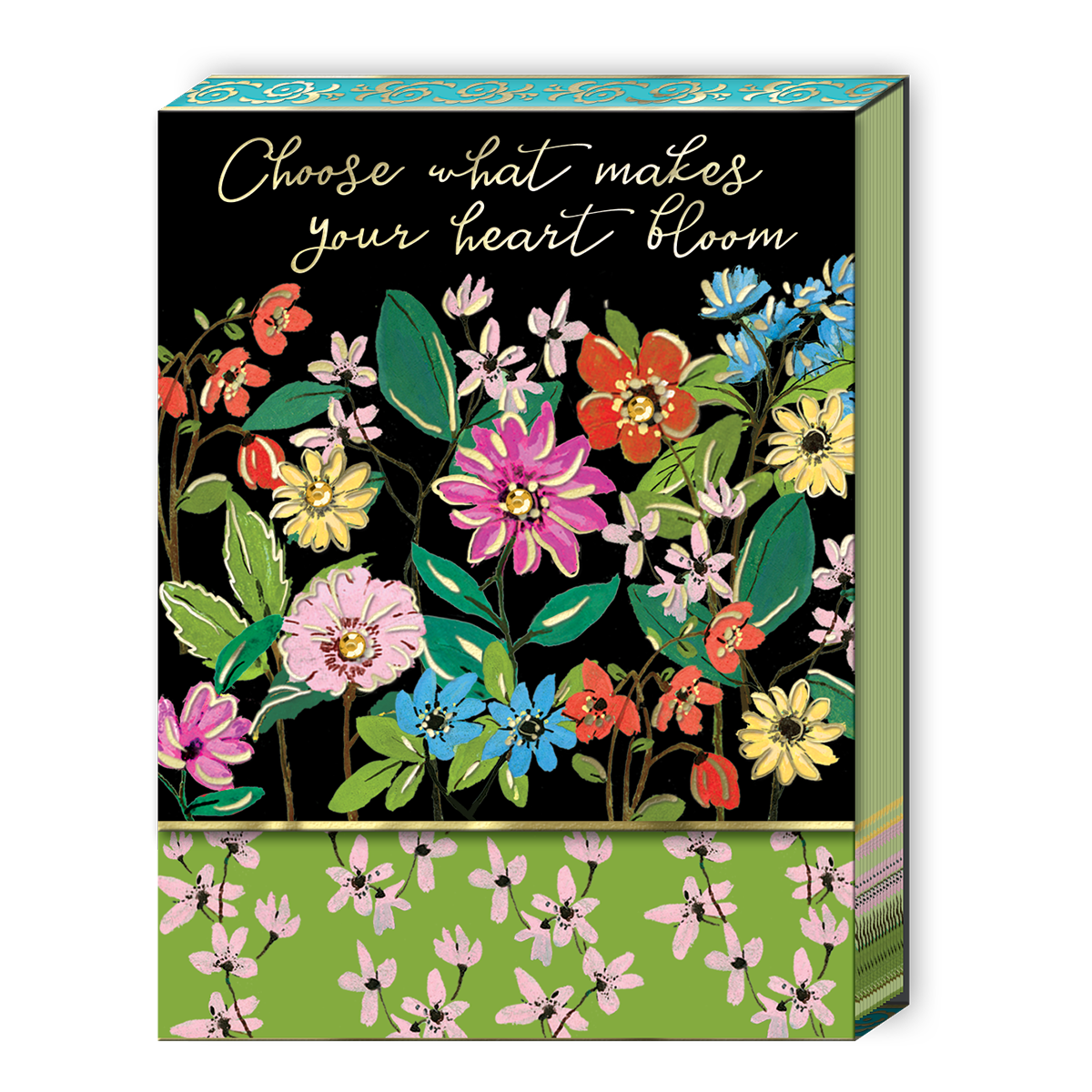 Bold blooms and butterflies with gold and gems adorn these tiny pocket notepads. Features a protective magnetic flap closure to keep your sentiments safe inside. 75 printed color pages have border art elements from the cover.