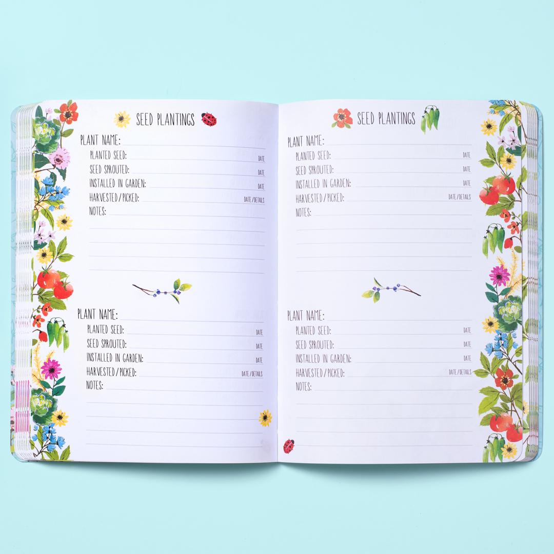 Whether you are cultivating a container garden, community space, or greenhouse, keep track of the details in this unique gardening journal. Four alternating page spreads in this cheerful linen textured cover gardening journal with space for entries like “In Bloom Today” and dates and times of fertilizing, weeding, and watering help you keep track of all the happenings in your growing space.