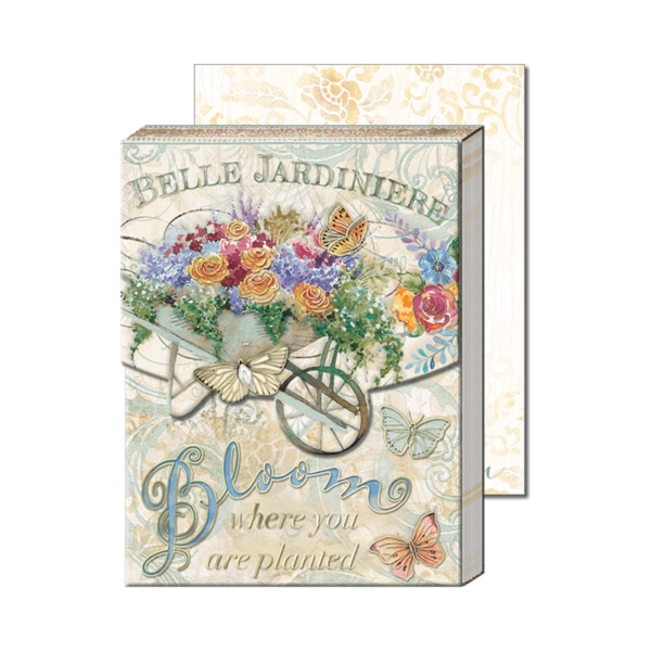 Buds, blooms, birds and butterflies with gold and gems adorn these tiny pocket notepads. They may be small, but they have plenty of room for your hopes, dreams, and plans. Features a protective magnetic flap closure to keep your sentiments safe inside. 75 printed color pages have border art elements from the cover.