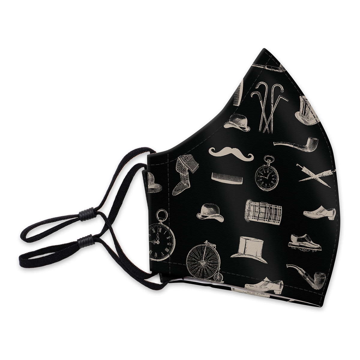 - Adjustable elastic ear loops, including rubber bead to adjust the elastic length, and stopper to keep the bead from slipping off
