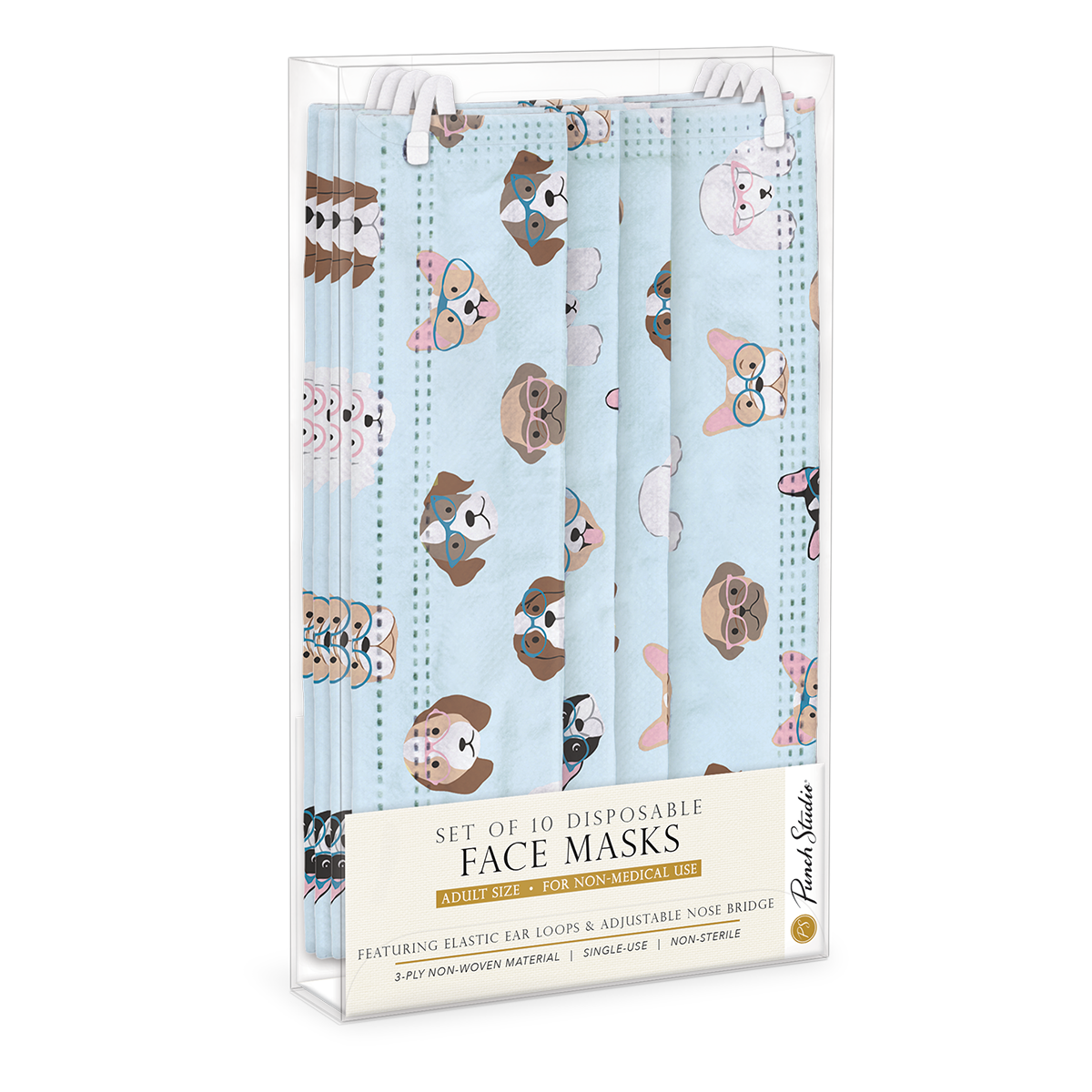 Proclaim your love of pets with one of these disposable masks featuring your favorite animals in playful patterns. Ten masks in a pack, with three-ply non-woven fabric, adjustable pinch nose band and elastic ear loops.