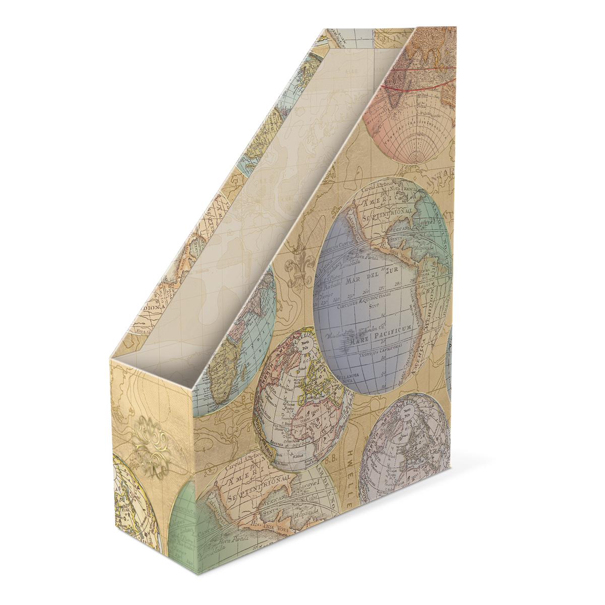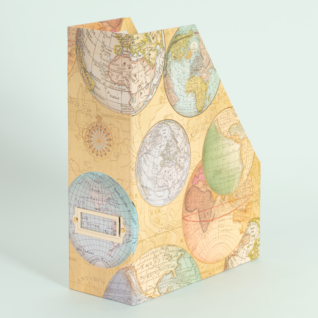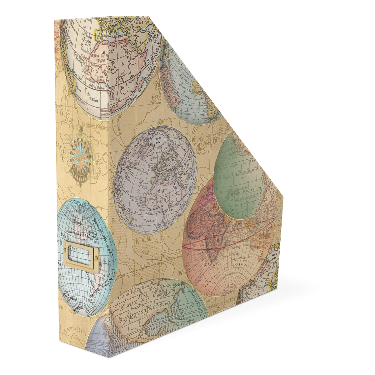 Bring the world into your workspace. Vintage look standing storage with metal label frame keeps magazines, newsletters, files, or manuals visible and handy.