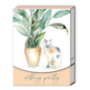 Teeny tiny tabbies sitting in pretty plants. What more can you ask for in a handy pocket-size notebook that can fit easily in your pocket or purse. 75 full color printed lined sheets with tiny corner border art on every page. Cover features rose gold foil embellishments and a magnetic flap closure.