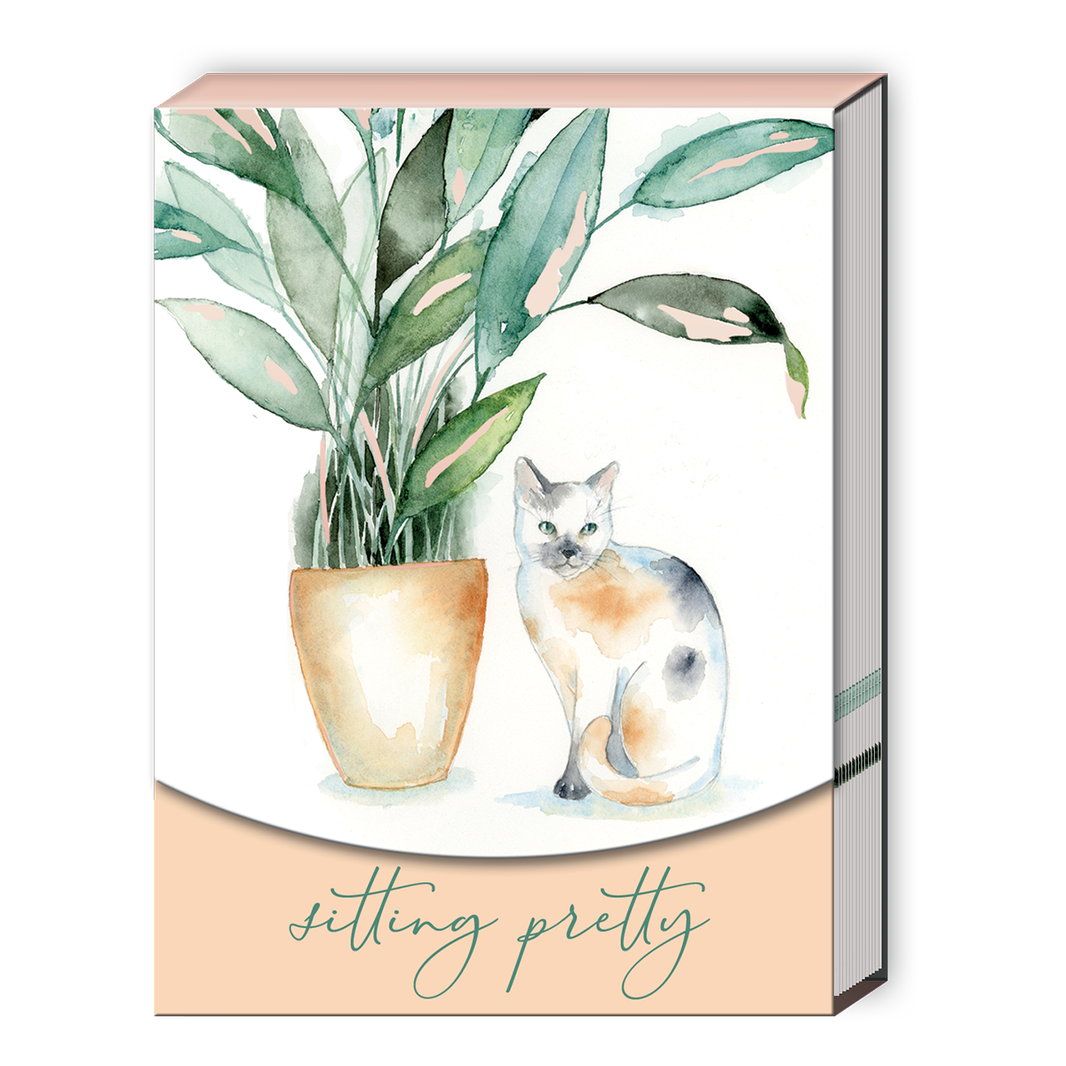 Teeny tiny tabbies sitting in pretty plants. What more can you ask for in a handy pocket-size notebook that can fit easily in your pocket or purse. 75 full color printed lined sheets with tiny corner border art on every page. Cover features rose gold foil embellishments and a magnetic flap closure.