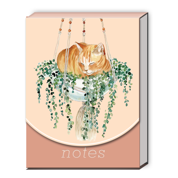 Teeny tiny tabbies sitting in pretty plants. What more can you ask for in a handy pocket-size notebook that can fit easily in your pocket or purse. 75 full color printed lined sheets with tiny corner border art on every page. Cover features rose gold foil embellishments and a magnetic flap closure.