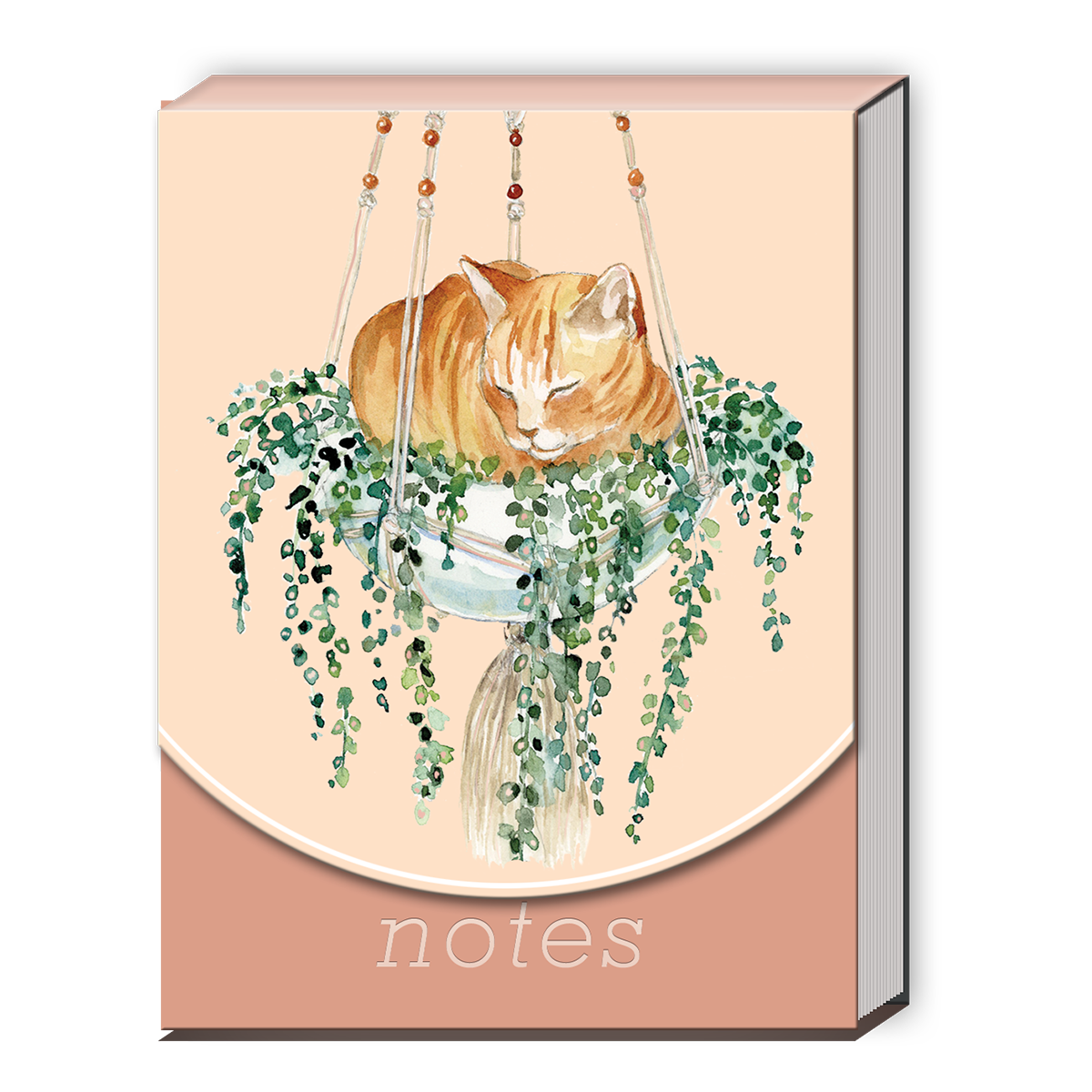 Teeny tiny tabbies sitting in pretty plants. What more can you ask for in a handy pocket-size notebook that can fit easily in your pocket or purse. 75 full color printed lined sheets with tiny corner border art on every page. Cover features rose gold foil embellishments and a magnetic flap closure.