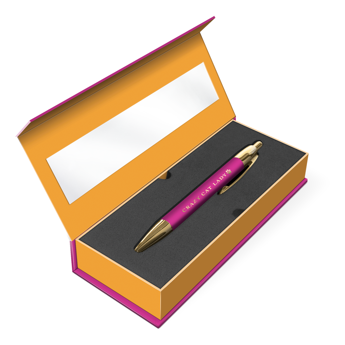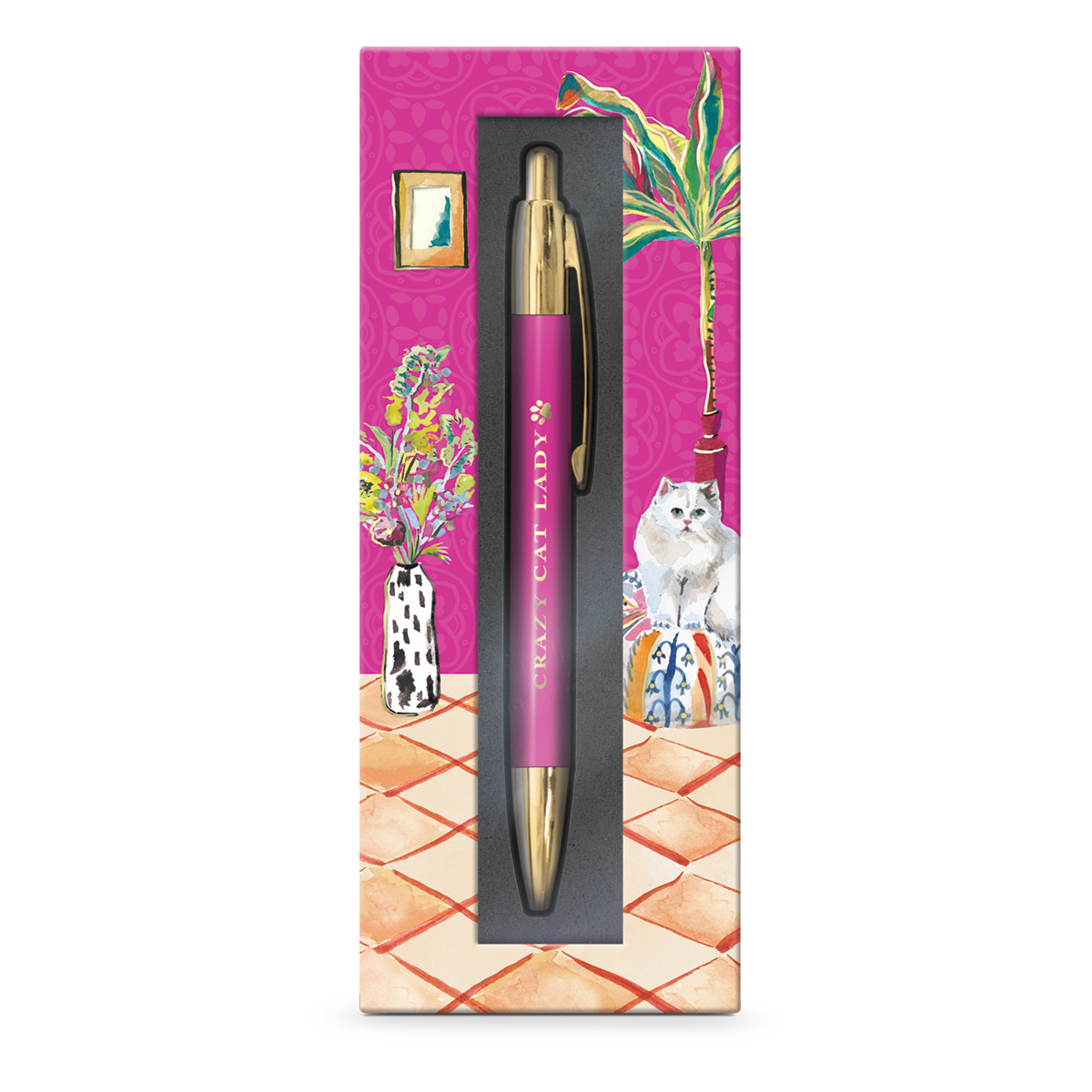 Whether you prefer paws or patterns, our retractable black ink pet pens feature full color printed barrels with gold foil in a fancy coordinating Gift box. Great combo Gift with any of our uptown pet journals, notebooks or listpads.