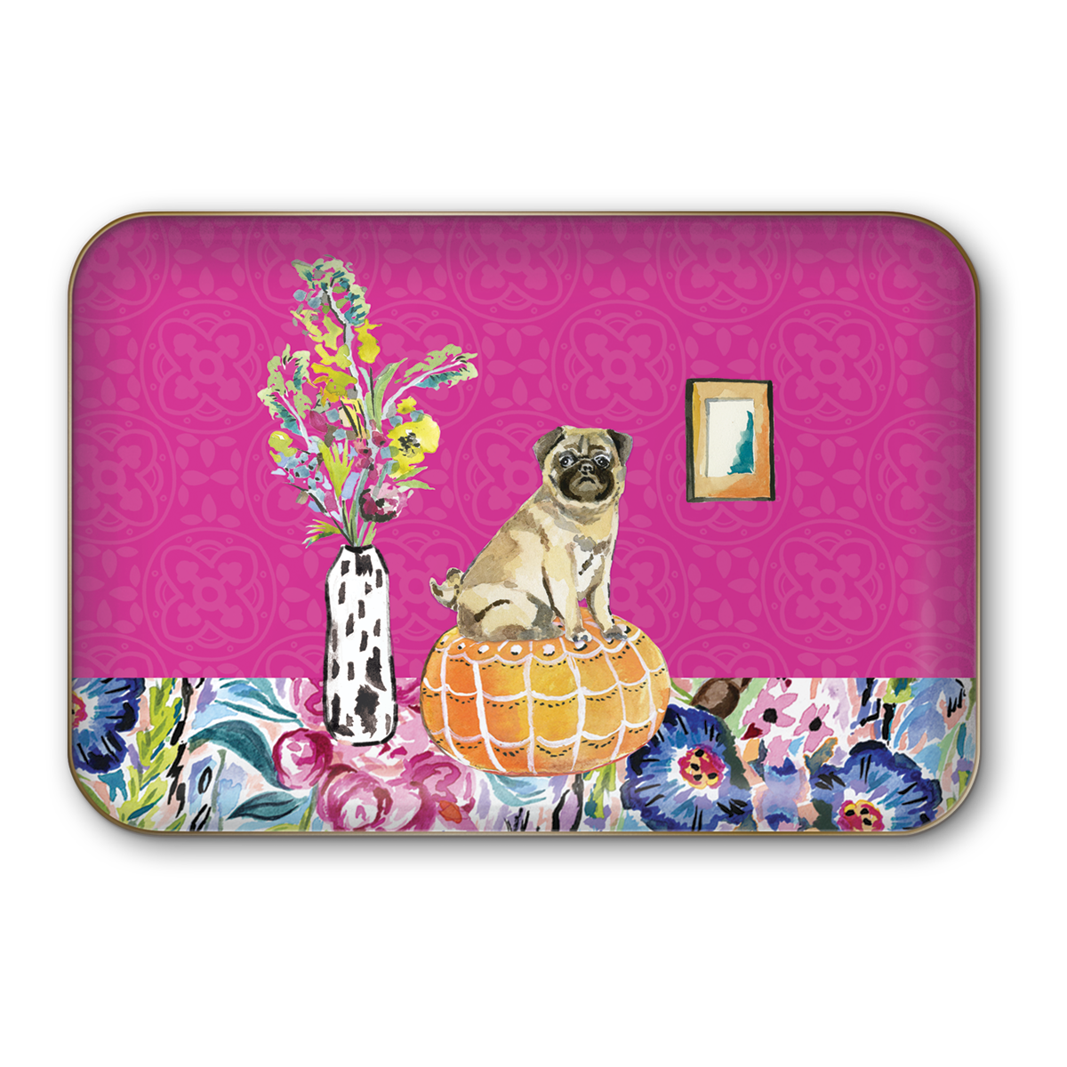 Pretty enough to hang on a wall as décor. Use a few of these little metal trays together on your nightstand, dressing table or craft area. Glossy printed surface is backed with gold metallic finish base.