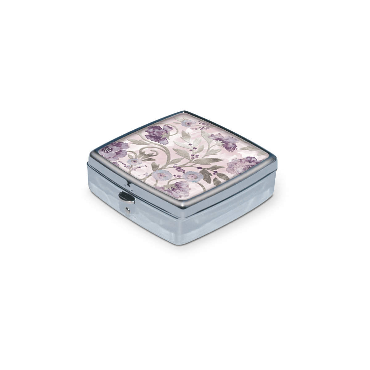 Just two inches square, our chrome-plated pill boxes keep your meds handy, but can also contain all those little things you need in a pinch—buttons, paperclips, earrings, etc. Plastic lined interior has two compartments. Includes, press-release latch closure.