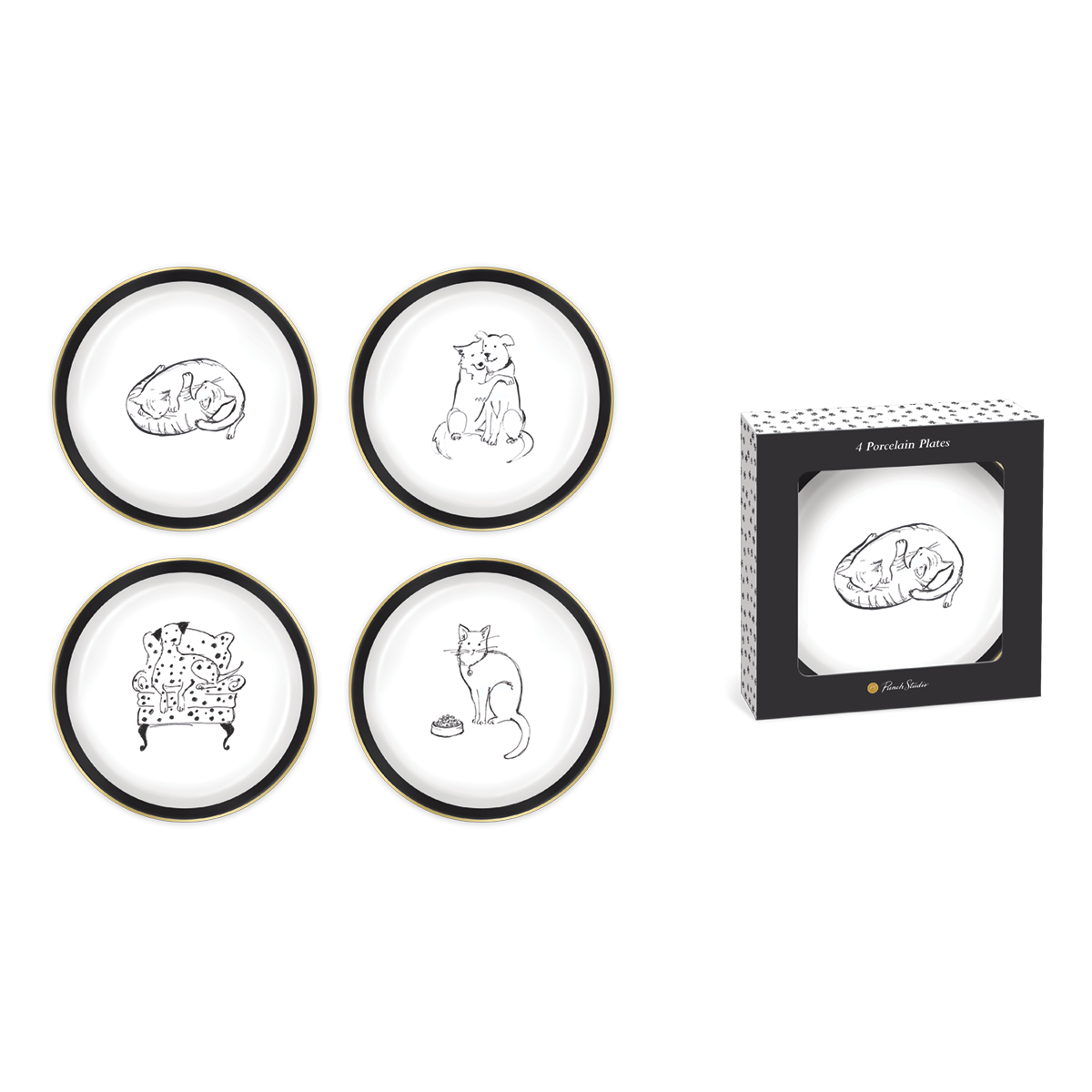The sweet little pet faces on these painted porcelain plates will make anyone smile. Set of four designs features fancy gold-trim edging and is highly Giftable in the coordinating window Gift box.