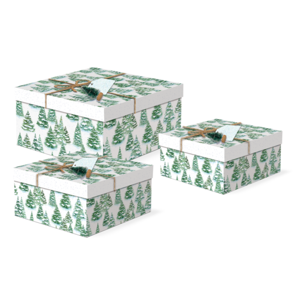 - Set of 3 nested boxes with jute tie and bristle brush tree