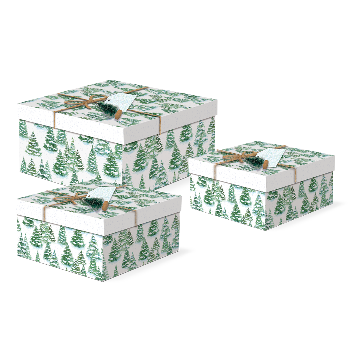 - Set of 3 nested boxes with jute tie and bristle brush tree