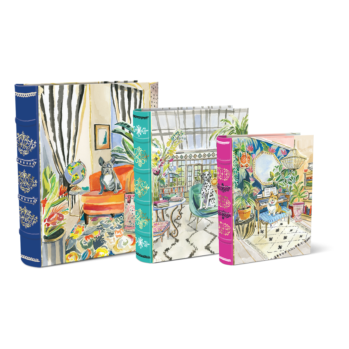 These posing pleasant pups pets are comfortable anywhere—whether it’s the music room, salon, or solarium. Our multi-size book-style storage boxes can stylishly store your little luxuries anywhere at home. Nesting when not in use saves space.