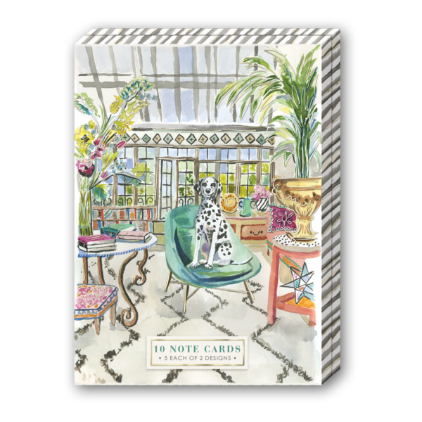 Open this glittery gold-foiled box pouch and find ten carefully kept blank cards in two different dog designs with coordinating envelopes conveniently tucked inside. Features gold foil envelope seals as a fancy finishing touch.
