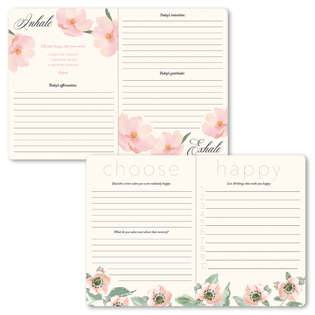 Deep breathing, gratitude, being present, and cultivating good habits. Our inspirational soul journal has spreads with spaces for things like goals and steps to achieve them, things that make you happy, and things that you are grateful for. 192 full color pages of eight alternating guided life improvement spreads give you plenty of room to work on living your best life.