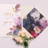 Whatever you need to say—Thanks, Thinking of You, or Keep the Faith—we have a card for that. Printed on fancy wedding or pearlescent paper stock accented with metallic foil or glitter. Each card has coordinating envelope with full color artwork inside.